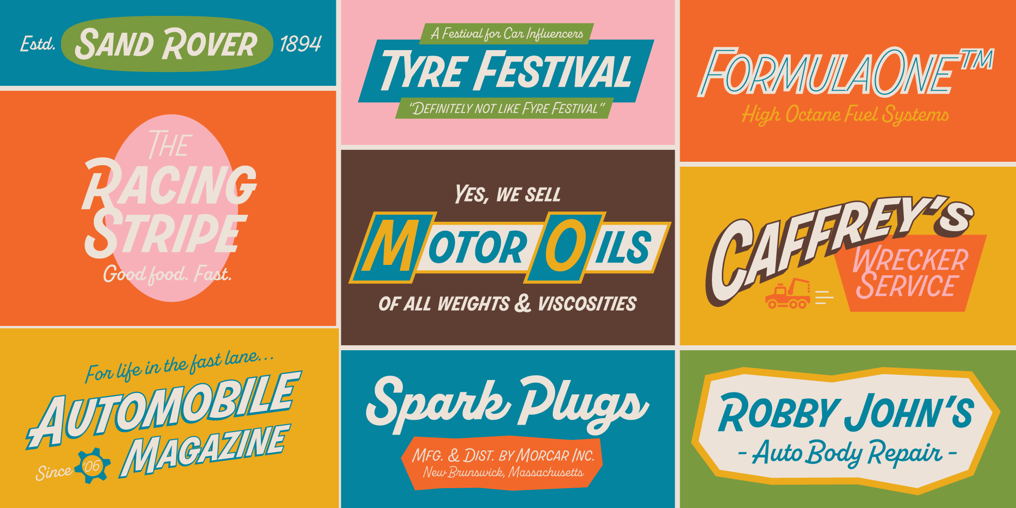 As they describe the typeface themselves: “Lowdrag can race to the scene of your next project with vintage charm and flair. Like an old friend with new sideburns, it's got its quirks, but retains some familiar charm. Take it for a spin on a spirited label or make headlines for that new gig you got in town. Lowdrag won't promise that people will show up, but at least the flyer will look nice.”