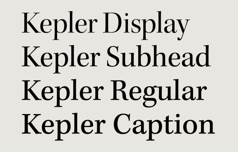 Kepler is an impressive type family counting 168 different serif fonts. Named after the German Renaissance astronomer, Kepler is a contemporary type family created by type designer Robert Slimbach in the tradition of classic modern 18th-century typefaces. One of our favorite free fonts for 2024.Traditionally, modern typefaces are known for their cool intellectual quality, but Slimbach’s Kepler captures the modern style in a humanistic manner. It is elegant and refined with a hint of oldstyle proportion and calligraphic detailing that lends it warmth and energy.