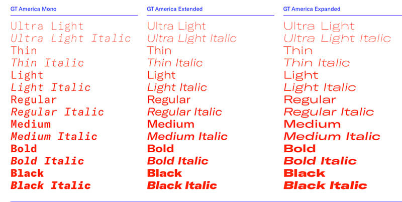 Talking about true workhorse typefaces, GT America is one of those families you just can’t miss. Once you had a look at everything that goes into this typeface from Swiss foundry Grilli Type, your appreciation of font design will never be the same. We often get the question of what the best font for business cards is, and while there are so many that are qualified, GT America is such a functional font for any scale and size.With 84 different weights/styles, this family will assist you whenever you need it. As they describe GT America themselves: “GT America is the missing bridge between 19th century American Gothics and 20th century European Neo-Grotesk typefaces. It uses the best design features from both traditions in the widths and weights where they function optimally.”