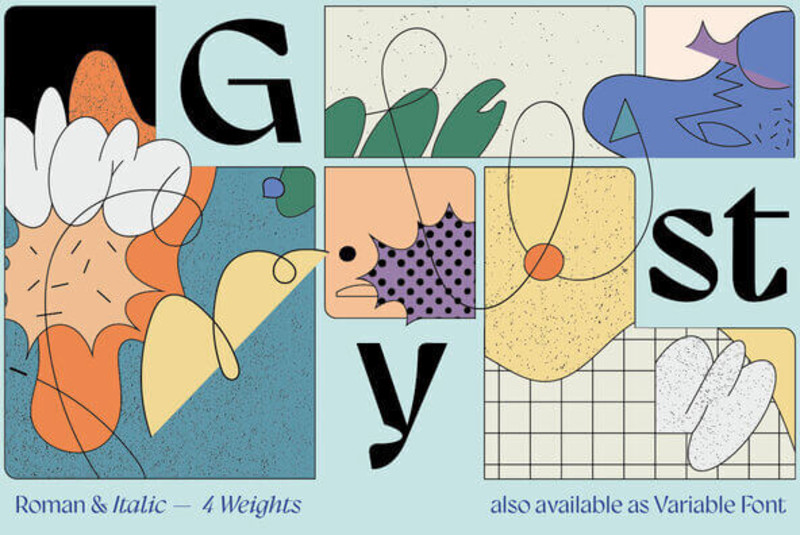 Gyst is a neo-humanist sans-serif typeface that artfully blends the principles of Grotesque and Antiqua. With its classic uprights and the serifs in its true italics, Gyst spans the arc from a modern humanistic sans serif to a captivating calligraphic serif. Without a doubt one of our favorite free fonts at the moment.Designed by Roland Hörmann and published by Phospho comes in 4 upright and italic weights, all equipped with a whole lot of Alternates and Ligatures. Works for both headers and body text. Now available for free for all Adobe members at Adobe Fonts.
