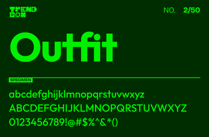 Outfit, a clean and versatile geometric sans-serif, is perfect for both contemporary branding and straightforward user interfaces. This font family, crafted by Rodrigo Fuenzalida, is optimized to bring clarity and style to a variety of digital and print projects, from logos and app interfaces to presentations and marketing materials. With nine weights ranging from thin to black, Outfit offers flexibility for a cohesive visual hierarchy across headlines and body text. Its modern, unassuming design makes it a popular choice for creatives who want an adaptable and professional typeface that still brings a bit of edge.