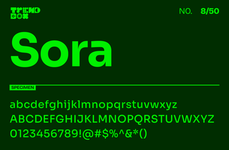 Sora, created by Jonathan Barnbrook and Julián Moncada, is a crisp, geometric sans-serif font that exudes a digital and futuristic feel. This typeface, initially developed for a decentralized finance platform, brings a sense of innovation and precision to any project. With its sharp edges and balanced letterforms, Sora is ideal for fintech, technology branding, and modern websites. Its eight weights make it adaptable for both large and small text, and it’s perfect for designers looking to create clean, cutting-edge layouts.