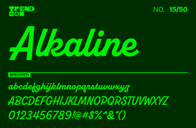 With its distinct geometric shapes and striking asymmetry, Alkaline delivers a dose of rebellious energy to any design. Its unique character pairs well with experimental or edgy projects, adding personality and flair without sacrificing legibility. If you’re looking to push creative boundaries and make your typography truly stand out, Alkaline is a fantastic pick for your next project.