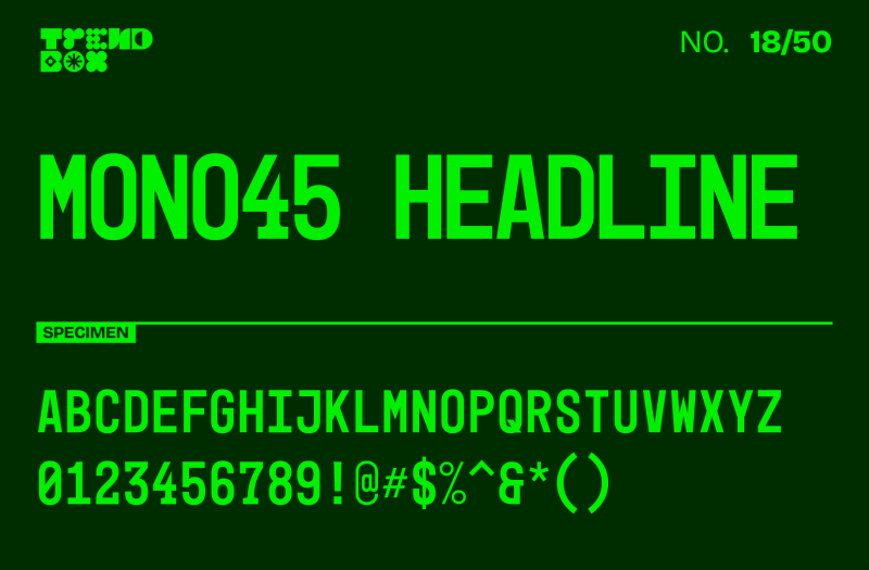 Drawing inspiration from vintage typewriters but reimagined with contemporary flair, Mono45 Headline stands out with its geometric shapes and balanced spacing. Its design ensures clarity and boldness, perfect for grabbing attention while retaining a clean, professional aesthetic. Whether you’re creating minimalist visuals or statement typography, this font delivers a unique combination of nostalgia and innovation.