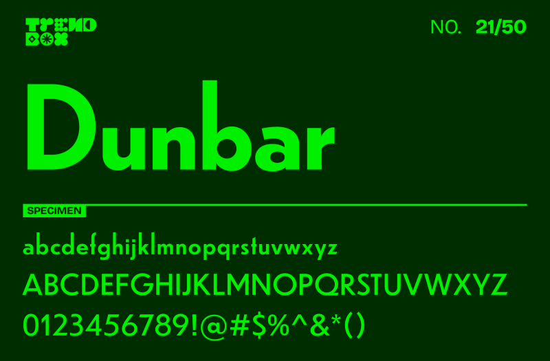 Dunbar, designed by the talented CJ Dunn fromCJ Type, is a geometric sans-serif that masterfully combines boldness with elegance. This typeface is a powerhouse for display applications, boasting sharp, clean lines and slightly condensed forms that draw the eye effortlessly.