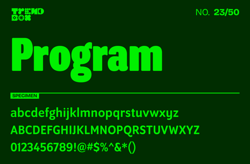 Program is a masterclass in type design that breaks conventional rules in the most sophisticated ways. Designed by Zuzana Licko from the iconic type foundry Emigre, this contemporary sans-serif is predicted to catch the eye of designers who appreciate the finer details of typography. What makes Program particularly fascinating is how it expertly mixes different structural elements and stem endings while maintaining harmony across its styles. The font showcases both rounded edges and strategic ink traps, making it especially effective for designers working across both digital and print media in 2025. With four weights in the standard width and three in its narrow version, Program offers a refreshing approach to type family relationships, where stem weights rather than overall color are matched for more dynamic display applications.