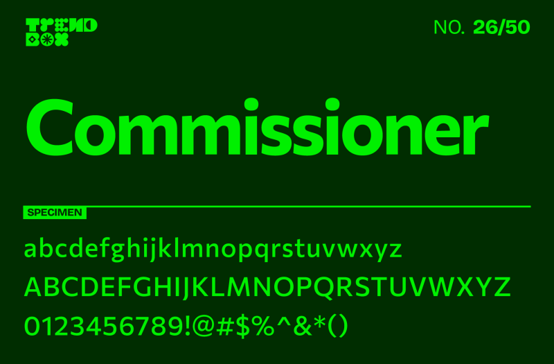 Commissioner, designed by Kostas Bartsokas, is a modern sans-serif typeface with a straightforward yet refined aesthetic. Built with readability in mind, Commissioner offers a versatile design that can adapt to both body text and display settings, making it great for user interfaces, brand identities, and corporate designs. With nine weights and italics, this font provides a complete family for creating cohesive design systems where clarity and professionalism are essential.