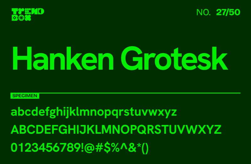 Hanken Grotesk, byAlfredo Marco Pradil, is a sans-serif typeface that combines simplicity with a friendly, approachable aesthetic. Known for its legibility and versatile design, Hanken Grotesk is suitable for digital interfaces, branding, and editorial projects that require a clean, modern look. Available in multiple weights, it’s a dependable choice for a wide range of applications.