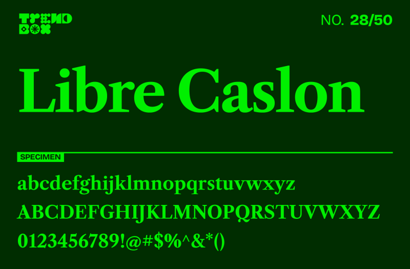 Designed byPablo Impallari from Impallari Type, Libre Caslon Text brings the classic, timeless Caslon aesthetic to modern digital use. With its warm, humanist forms, this serif typeface is perfect for editorial work, branding, and projects that require a traditional feel. Available in 3 different weights including an italic, Libre Caslon Text adds a touch of elegance and readability to print and digital layouts.