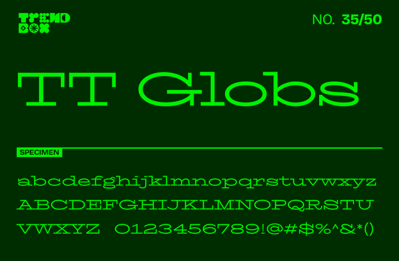 Looking for a slab serif that breaks all the rules in the best possible way? TT Globs is set to become 2025's go-to choice for designers who aren't afraid to have a little fun with typography. Designed by Antonina Zhulkova and Yulia Gonina from TypeType, this distinctive typeface cleverly merges historical slab serif elements with contemporary design flair. What makes this font particularly exciting is its playful personality - those extended serifs create an almost pattern-like effect in text settings, while asymmetrical details and wave-like elements add a dash of summer-fresh energy.As experimental typography gains momentum in 2025, TT Globs will be the perfect choice for designers working on projects that need to balance professionalism with personality, from vibrant editorial layouts to attention-grabbing brand identities.
