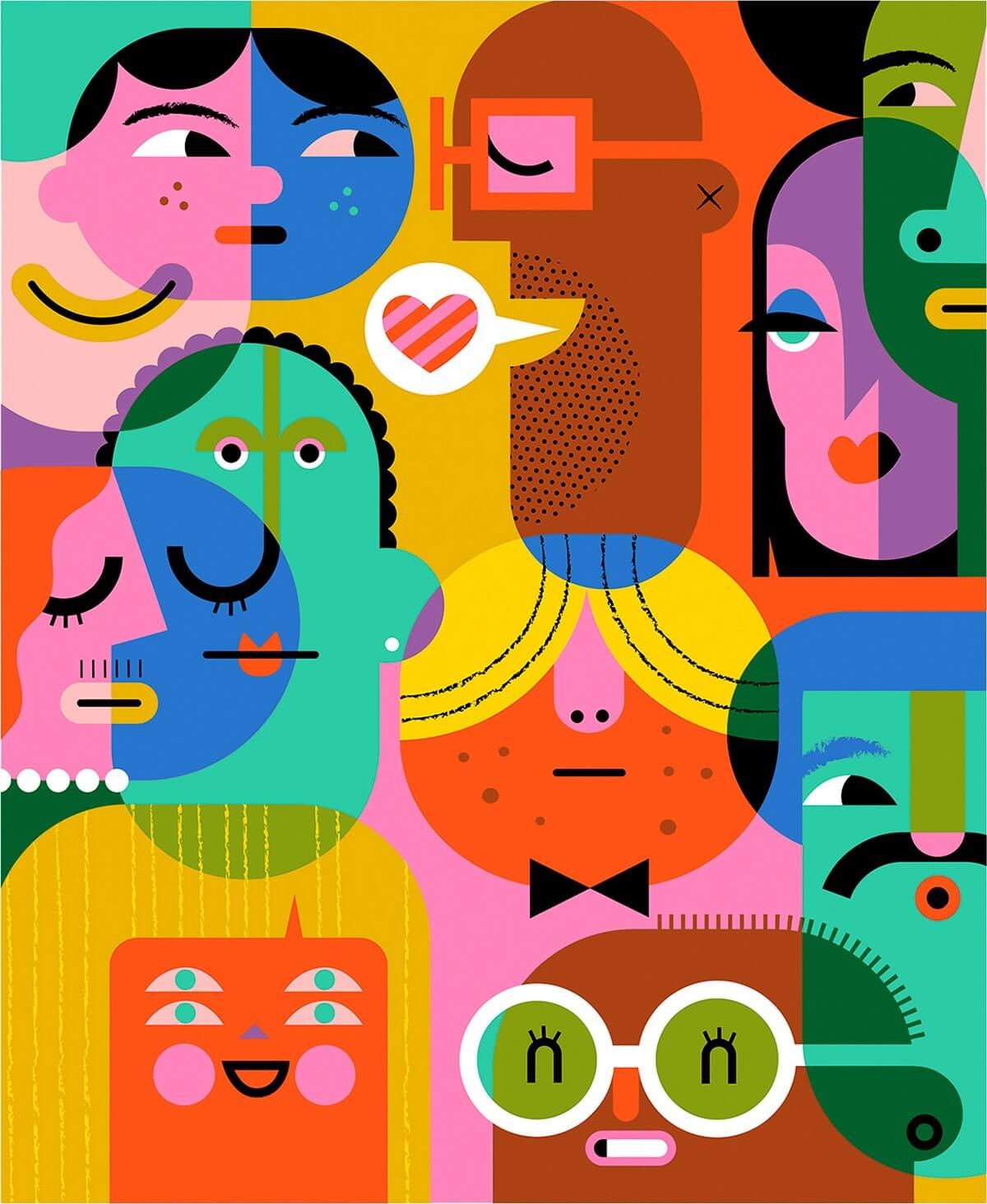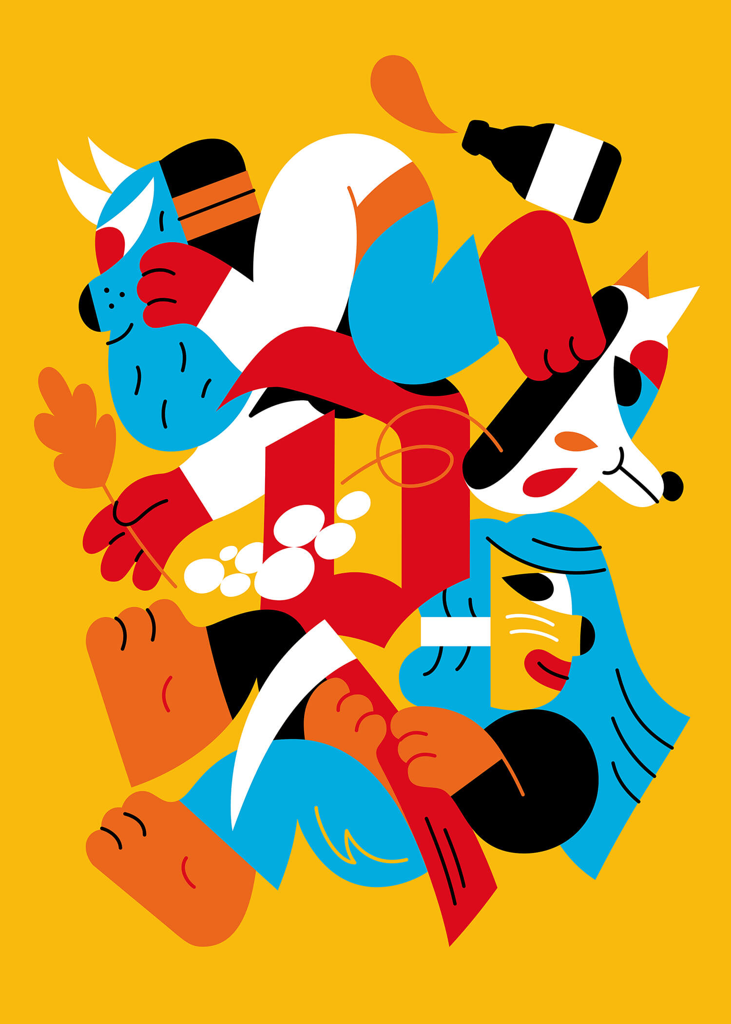 His work, celebrated by Adobe illustration artists, is a joyous exploration of positivity conveyed through bold, graphic shapes and a palette of vibrant, pop-inspired colors. In his art, you'll discover a world of organized chaos, where sinuous and soft lines bring everything to life.