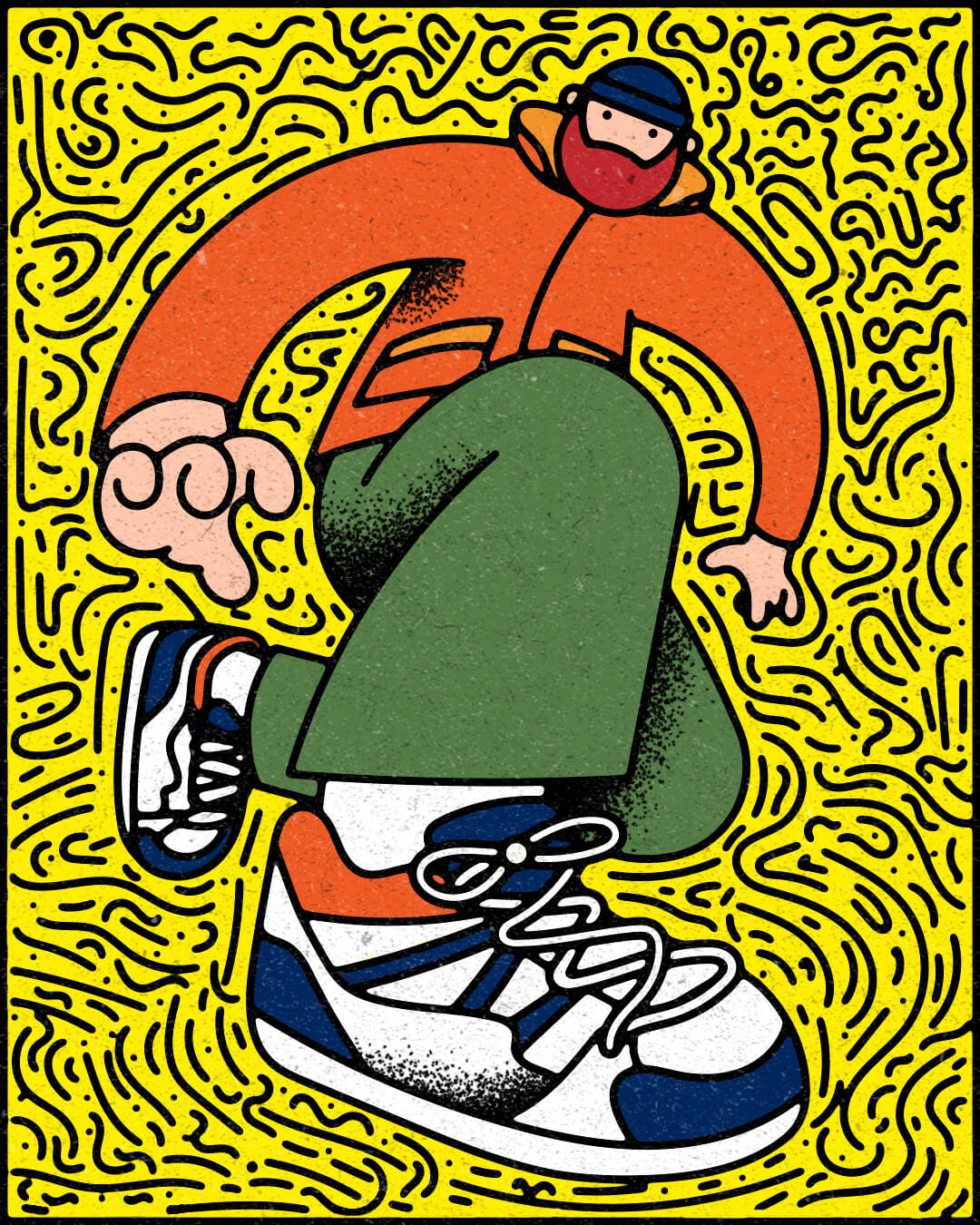 His work is characterized by bold, simple characters with uniquely quirky bodies and straightforward faces. Spencer has had the privilege of creating illustrations for renowned brands such as NPR, Lululemon, Jagermeister, and Harvard Business. Beyond digital art, his creations come to life on the walls of New York City through hand-painted murals.