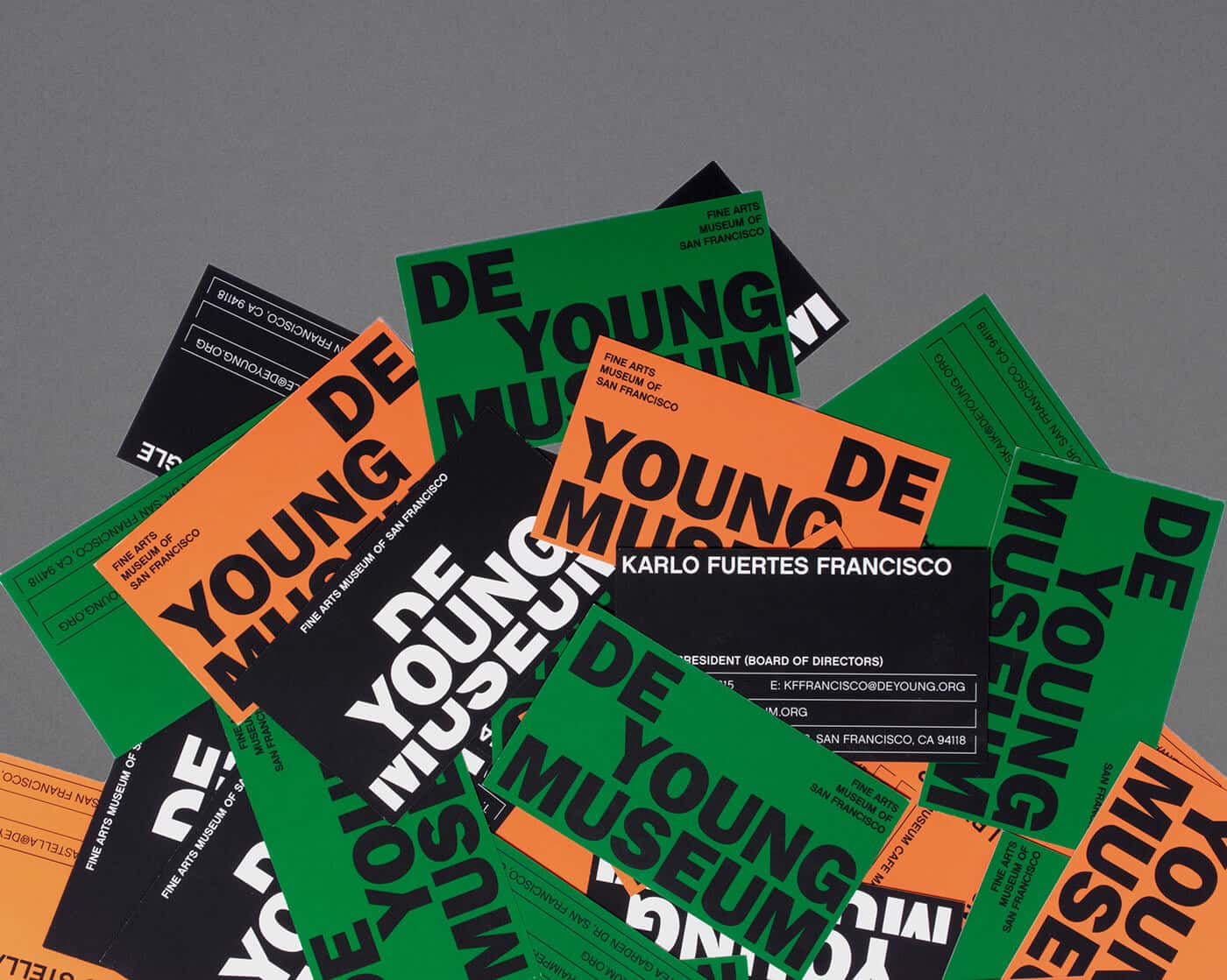 This bold Sans-Serif immediately catches your attention and looks disruptive and rebellious in a way that corresponds with a modern art museum. It’s becoming a recurring topic but the use of color is truly an element that you could consider when you’re designing your next business card and you want it to look modern.