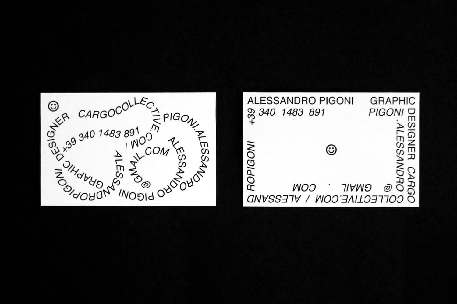 We’ve seen some examples so far of creative ways to use your text differently but this piece of personal branding from Allesandro Pigoni is truly something else. This black and white trend is something we see gaining popularity and it for sure has some artistic and Y2k aesthetics to it.