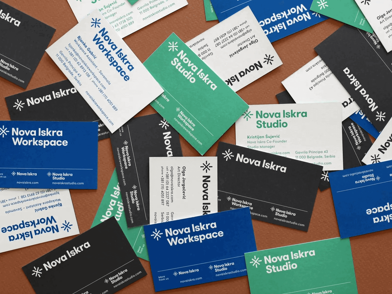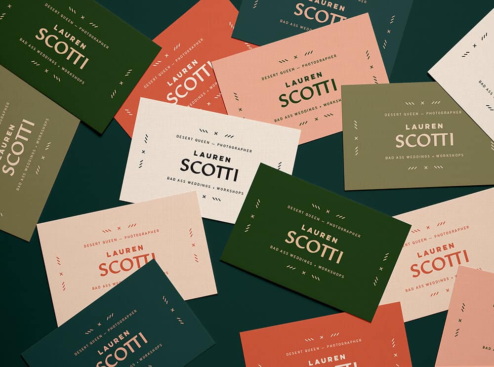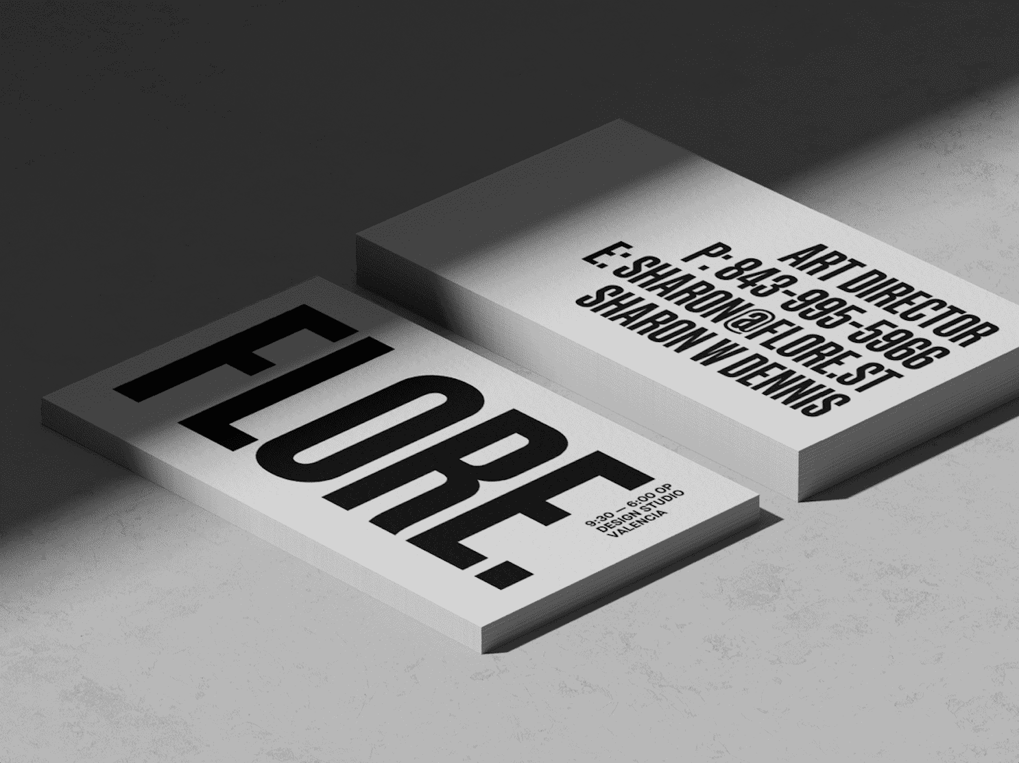 The bold sans serif font used on these cards work very well at a large size as on smaller texts like the contact info. This makes it possible to use one typeface across your entire brand. In case you’re considering this make sure your typeface of choice has enough weights in its font family to have a wide range of possibilities.