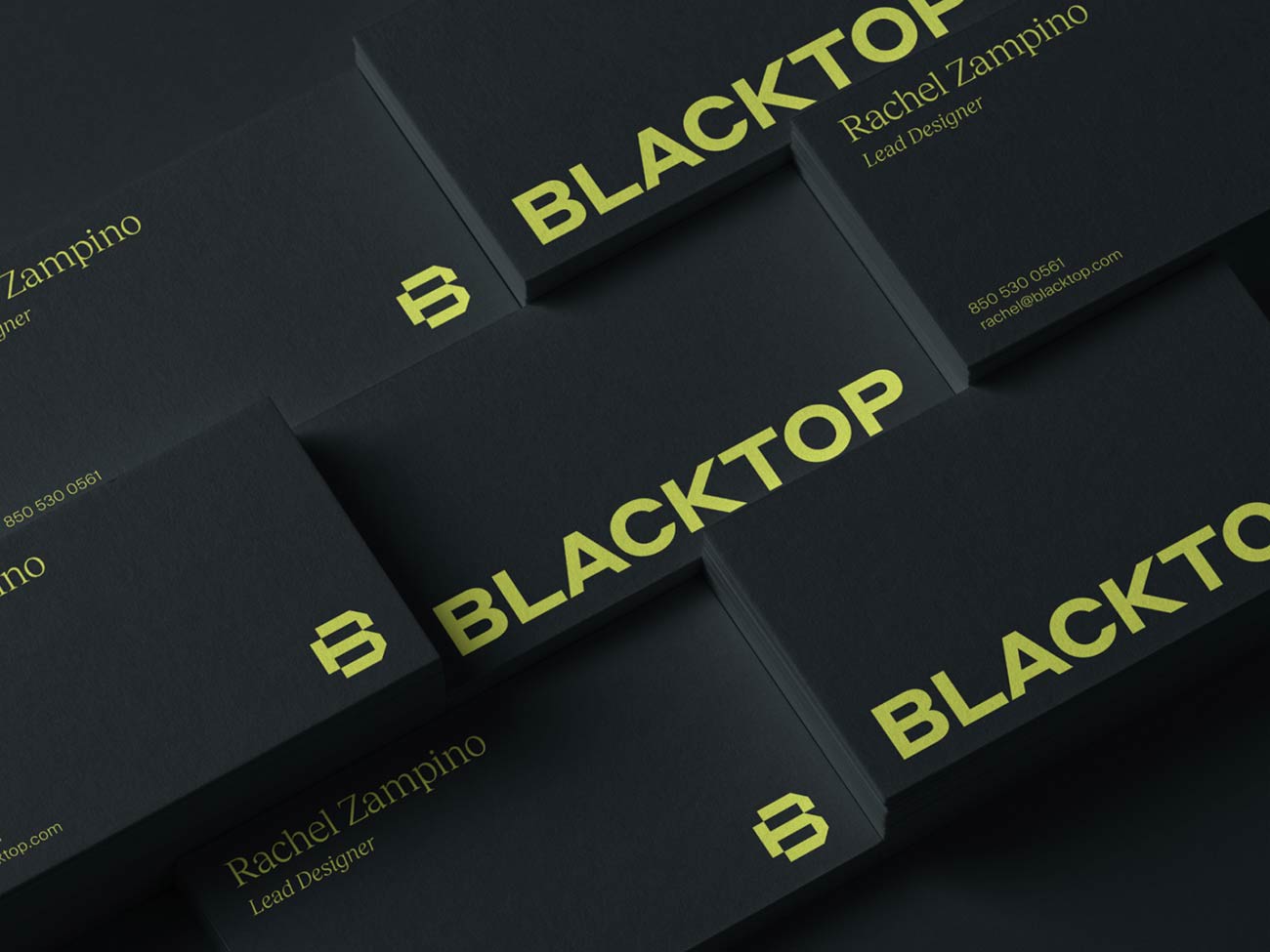 Making small adjustments to an existing font can result in a good looking logo while keeping it fully typographic. The contrast in color really lets the logo pop and a clever way using the black body text to add depth to the design and creating a better looking business card in the end. For a logo like this bold or black font weights often work best to make the final letterforms be more interesting to look at.