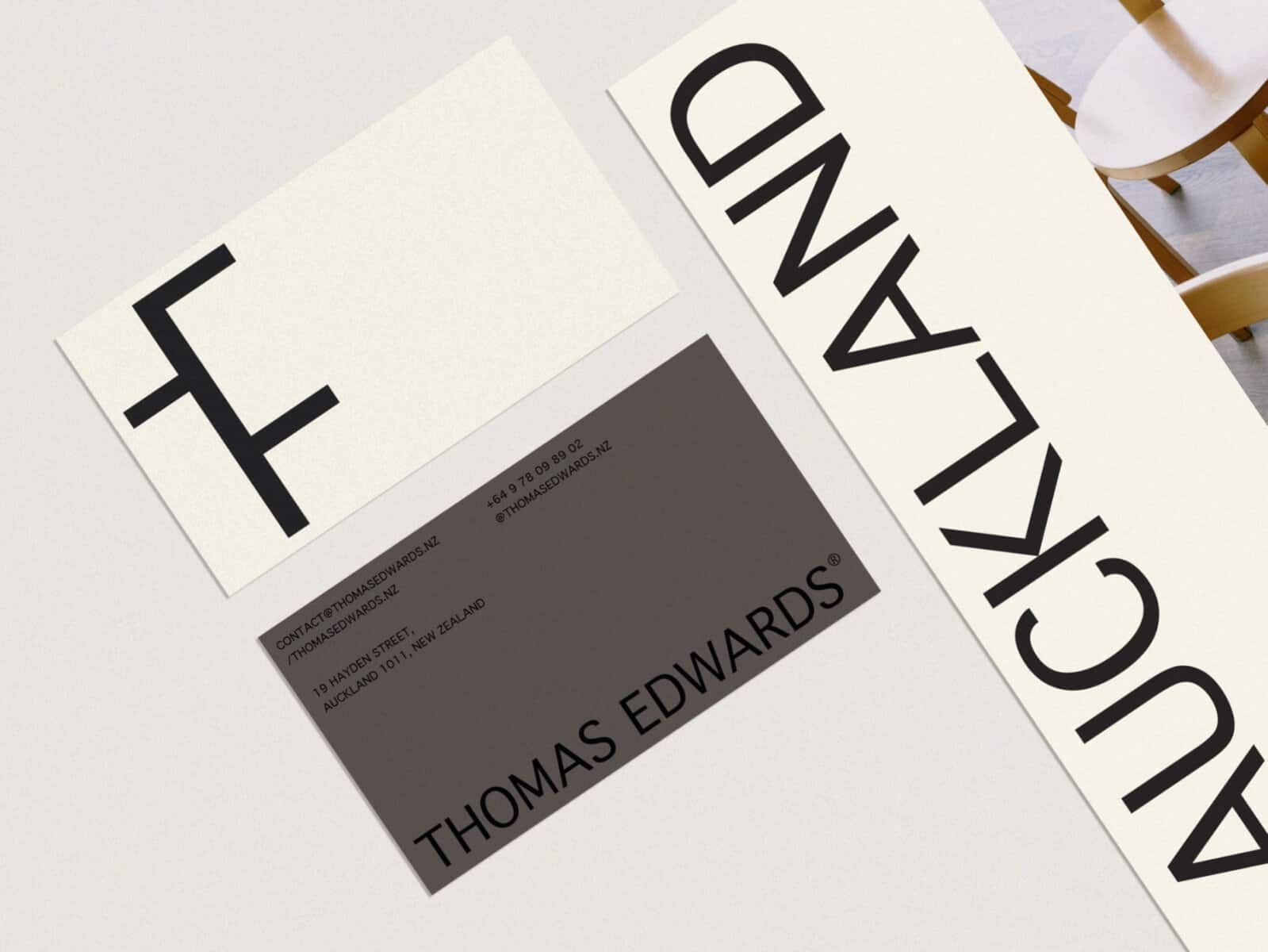 This solid typeface works perfectly for the brand’s name and instead of using the ‘E’ they rotated the ‘M’ to create a custom mark with ease. Combining the heavy display typeface with a grotesque body font, this business card definitely has some modern industrial influence to it.